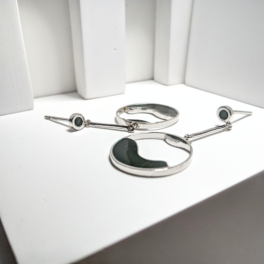 Enamel Green Wave Drop Silver Earring